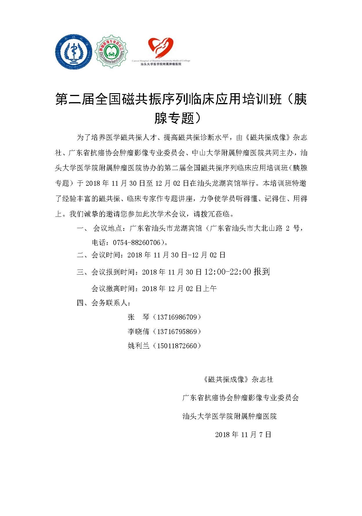 第二届全国磁共振序列临床应用培训班(胰腺专题)