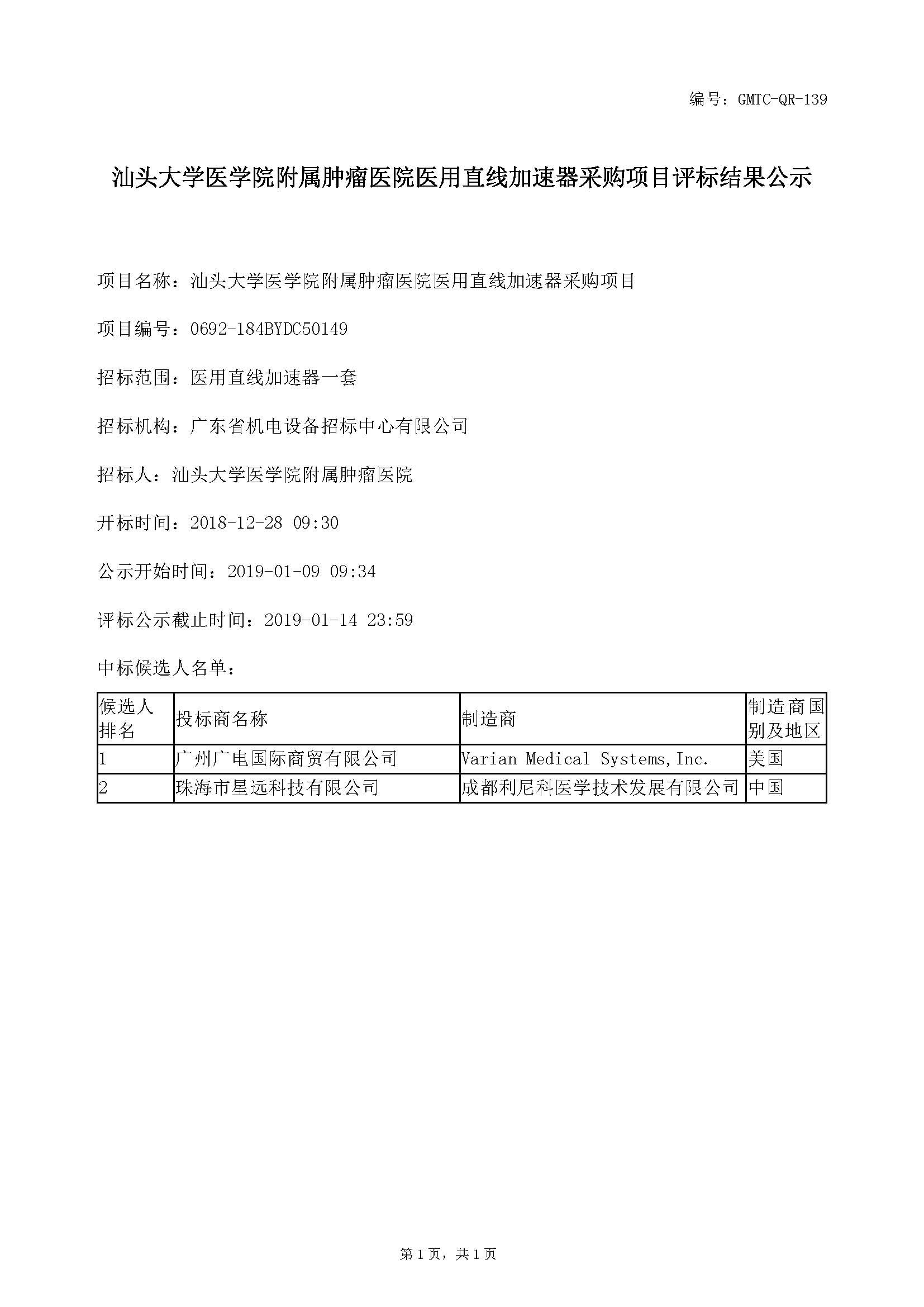 优米软件下载官方版医用直线加速器采购项目评标结果公示