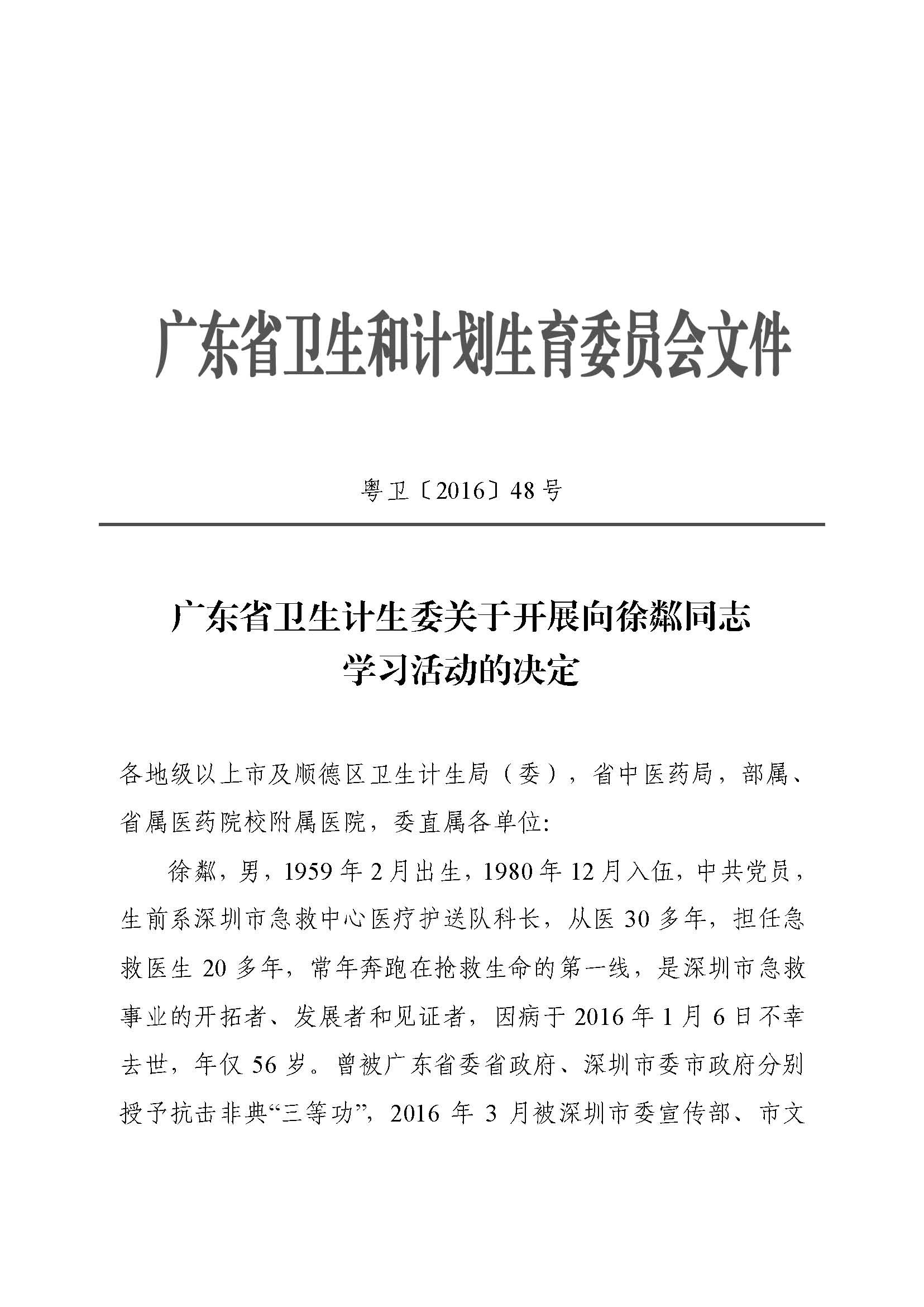 “两学一做”学习资料:[转]广东省卫生计生委关于开展向徐粼同志学习活动的决定