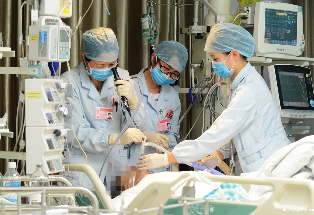 《严谨作风》 余淑贤|摄 照片中,ICU林主任和医生给病人做纤维支气管镜的检查和深部吸痰。这是一项精细的工作,必须有过硬的技术才能胜任。余淑贤护士长抓拍了林主任全神贯注查看纤支镜下的情况的场面。