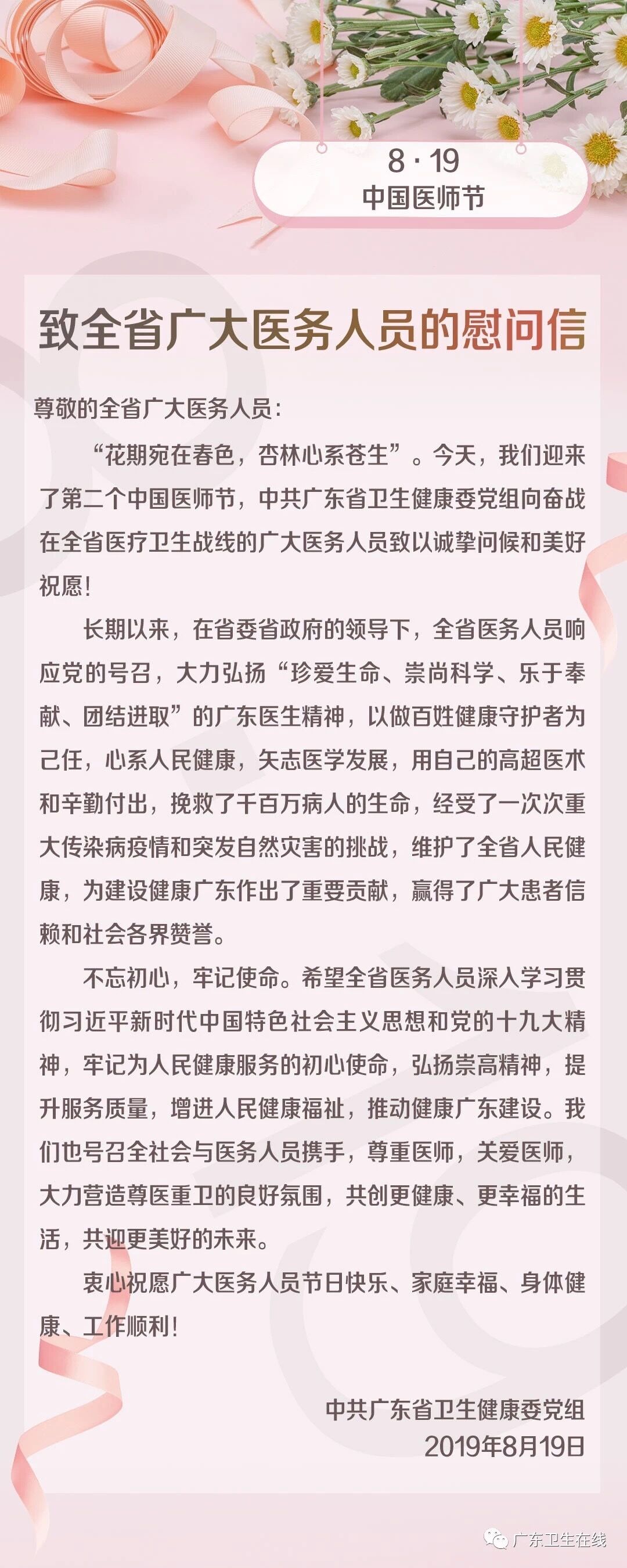 祝全体医务人员医师节快乐 ——转发中共广东省卫生健康委党组致全省广大医务人员的慰问信