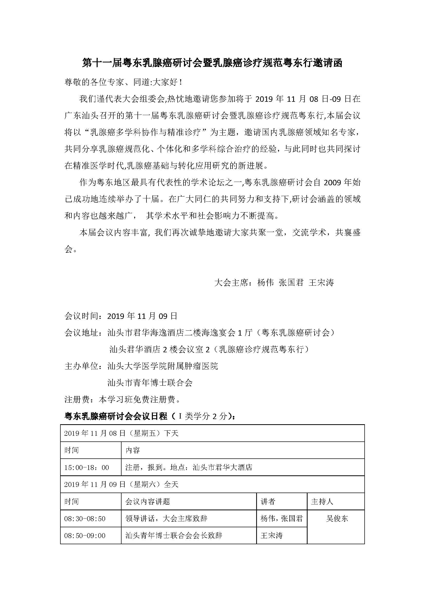 第十一届粤东乳腺癌研讨会暨乳腺癌诊疗规范粤东行邀请函