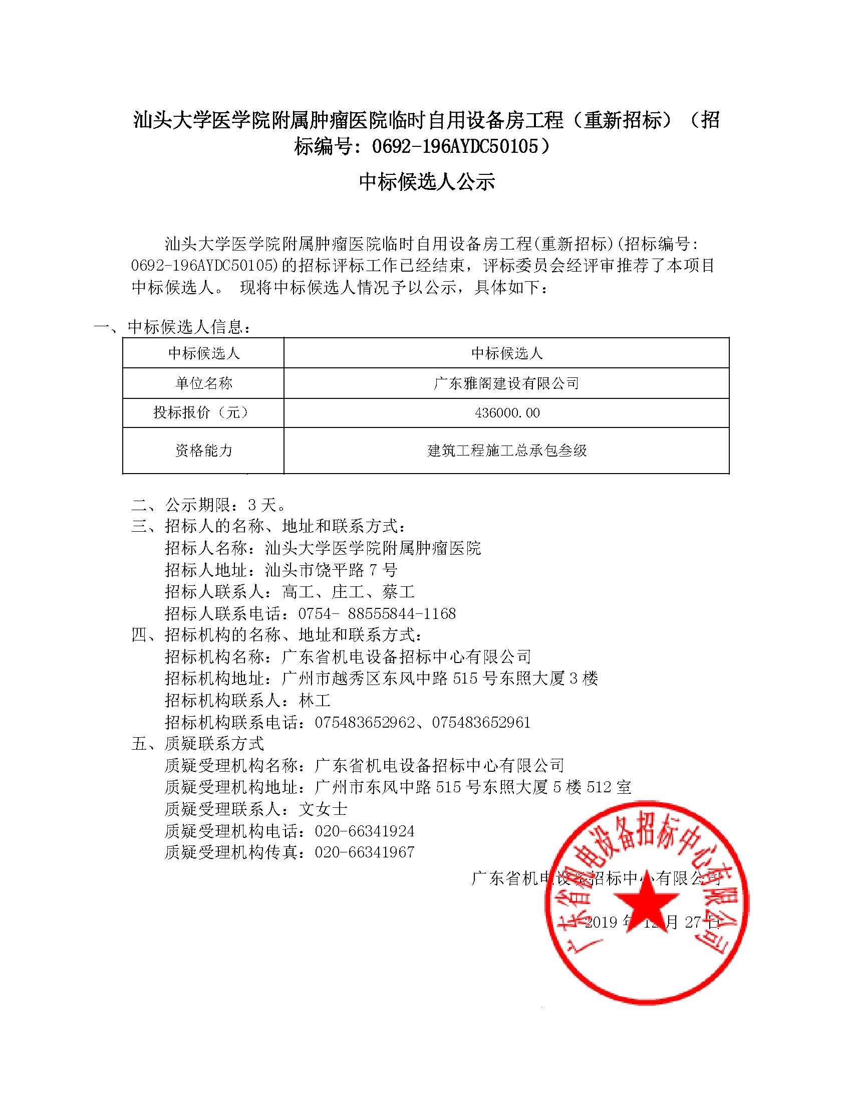 优米软件下载官方版临时自用设备房工程(重新招标)(招标编号: 0692-196AYDC50105)中标候选人公示