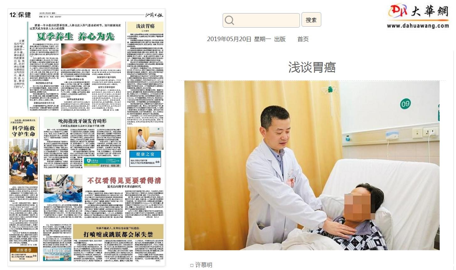 □ 许慕明 胃癌,包括食管胃结合部癌,在我国各种恶性肿瘤中发病率居首位,也是潮汕地区常见病种,严重威胁群众的身体健康。 早期胃癌多数患者无明显症状,易与良性病相混淆。随着病情进展可出现上腹不适、进食后饱胀、疼痛与体重减轻等临床症状,甚至是贫血、消瘦、呕吐和恶病质等表现。 胃镜检查能直接观察胃黏膜病变的部位和范围,并可活检获取病理结果,是诊断胃癌的最有效方法。但是很多患者害怕检查过程太辛苦,有抗拒心理。其实多数胃镜检查时间很短,约10分钟左右,而且可以选择无痛胃镜,所以不必担心。胸、腹、盆腔平扫+增强CT,是另外一项重要的检查,有助于胃癌的诊断和术前临床分期。当然,医生会根据患者的需要采用相应的检查。 根治性手术是胃癌最重要、最有效的治疗方式。它是指整块切除包括癌灶、部分或全部胃,清除胃周围的淋巴结,最大限度清除癌细胞。 化疗是另外一种重要治疗方式,用于根治性手术的术前、术中和术后,有助于提高生存率,也能减缓晚期肿瘤的发展速度,改善症状。新近出现的靶向治疗和免疫治疗也为晚期患者带来了新的希望。 腹腔热灌注化疗是近年来广泛使用的治疗手段,主要针对腹膜转移癌,是将化疗药物或者联合生物制剂一同注入到腹腔内,加热并恒定在40℃-43℃,以增加局部药物浓度和热杀伤力,以此来达到消灭肿瘤细胞的作用。对根治术后患者行腹腔热灌注化疗可以提高疗效和患者生存率。对于晚期患者可以控制腹水和腹腔肿瘤,改善症状,延长生存期。 与其他恶性肿瘤相似,胃癌重在预防。健康的生活方式、避免毒物伤害、锻炼身体和积极治疗癌前病变等,可避免大约1/3的胃癌发生。对于已经发生的胃癌,早期诊断治疗是关键,目前早期胃癌的治愈率已达90%以上。对于进展期胃癌,多学科讨论,制定规范化、个体化诊治方案对预后起到决定性作用,也能取得不错的治疗效果。对于晚期胃癌,治疗效果就要差得多。 很多患者道听途说,对胃癌的治疗过程和预后产生恐惧和绝望的心理。事实上,现代医学进步飞快,腹腔镜微创手术及快速康复外科理念的实施,大大减轻了患者的痛苦,促进患者的术后康复。新的治疗手段和药物持续涌现,也在不断改善预后。总之,及早到正规、有条件的医院就诊、接受治疗才是正确选择。 作者许慕明,优米软件下载官方版腹部肿瘤外科主任医师。2004年硕士研究生毕业,从事腹部肿瘤外科专业15年,有丰富的临床经验。兼职广东省抗癌协会、医学会和临床医学会等多个协会的常委或委员。 (原文链接:http://strb.dahuawang.com/content/201905/20/c48765.htm) |