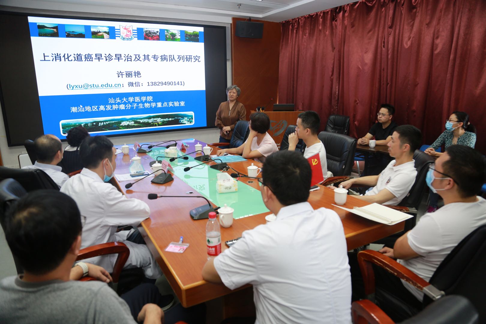为加强癌症筛查与早诊早治人才培养培训,提升癌症防治与健康管理水平,根据国家卫生健康委科教司《关于做好2020年度卫生健康人才培养培训工作的通知》(国卫科教教育便函[2020]115号)及《关于印发慢病健康管理——广东省癌症筛查与早诊培训项目管理办法(试行)的通知》(粤癌症中心函[2020]8号)要求,我院受汕头市卫健局委托,承担我市癌症早诊培训项目,在前期紧锣密鼓的筹备下,我院定11月份启动该项目。 11月2日下午,我们迎来了广东省癌症筛查与早诊培训项目汕头市培训班的开班仪式。卫健局副局长何烁坚、疾控科科长陈丽茹、杨伟院长、陈蕾副科长、许丽艳教授出席会议,本院的授课教师及全体学员参与此次仪式。会议由邱卫黎副院长主持。 邱卫黎副院长首先对领导和师生的到来表示欢迎。杨伟院长介绍我国以及汕头市的肿瘤发病现状,指出肿瘤是一种慢性疾病,强调早期发现、早期诊断和早期治疗能为患者争取更好的疗愈机会,提醒大家要结合十九届五中全会健康中国的战略,从政治高度来认识此次培训的重要性。何局长则从培训项目的背景、开展目的、开展意义等做了一一介绍,指出我们要精选优秀师资进行培训,与学员教学相长,真正使培训落实到位,并预祝学员学有所成,培训圆满顺利。仪式结束后,许丽艳教授以《上消化道癌早诊早治及其专病队列研究》为题,从流行病学的角度切入,向大家介绍了国内外癌症早筛的研究现状,详细讲解队列研究、机会性筛查的概念和本地的早筛研究工作,教学现场现学现考,互动氛围活跃。 本培训项目在国家、省癌症中心以及省卫健委、市卫健局层层推动下成功启动,首届参加培训的9名学员为来自汕头市六个区县的基层医务人员。我院结合培训大纲、教学目的,精选各科室优秀带教,开展理论授课与临床相结合的教学模式,力求达到国家、省市的培训要求,真正做到学员学有所得。这项工作的开展对提升基层医疗单位做好防治肿瘤的筛查工作具有重要意义。