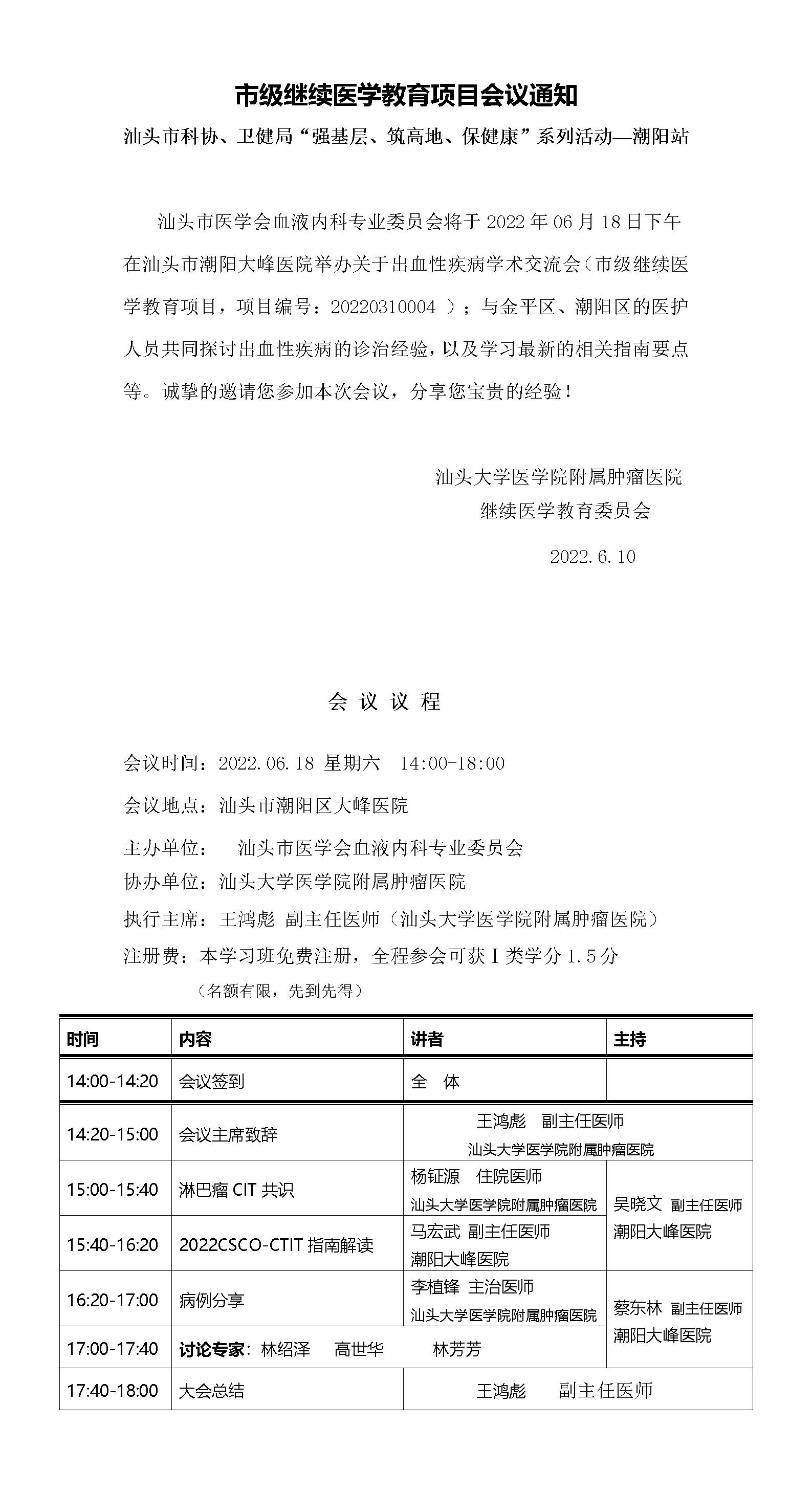 汕头市科协、卫健局“强基层、筑高地、保健康”系列活动—潮阳站(市级继续医学教育项目)会议通知