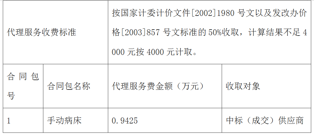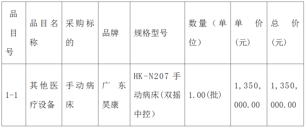 手动病床采购项目结果公告