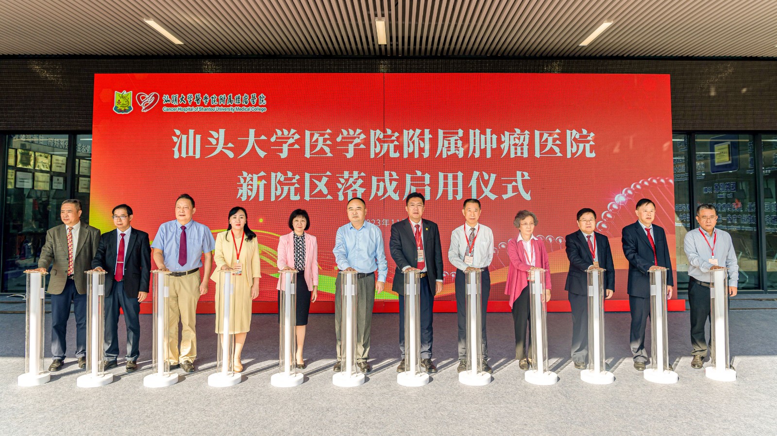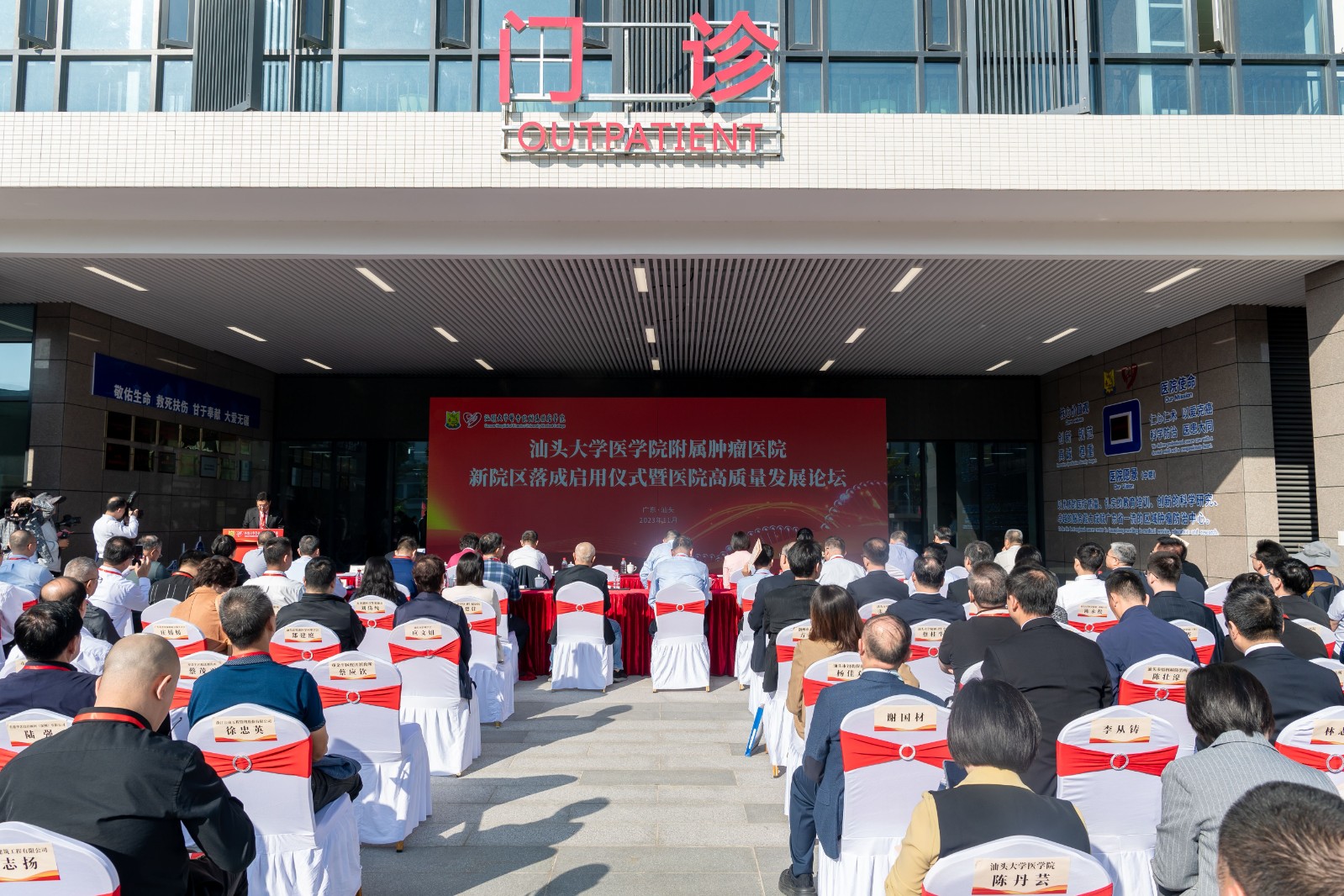 汕头市政府副市长李钊、汕头大学党委副书记、校长郝志峰、汕头市政协副主席蔡榕、汕头大学医学院院长谭学瑞、汕头市卫生健康局主要负责人杨芳、李嘉诚基金会顾问罗敏洁、汕头市政府有关部门、卫生院校、省内各兄弟医院、协会/学会、医院医联体合作单位、工程参建各单位等领导嘉宾以及肿瘤医院历任老领导、院领导班子、中层干部共300多人出席落成启用仪式,共同见证肿瘤医院开启新起点、迈进新征程的历史时刻。仪式由肿瘤医院党委副书记、院长王新家主持。
