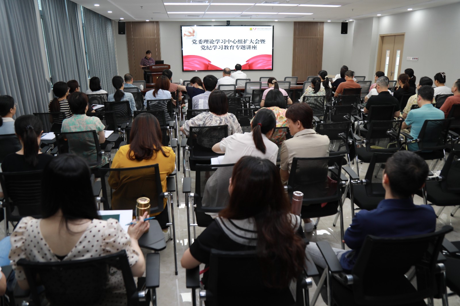为深入开展党纪学习教育,深化对《中国共产党纪律处分条例》理解运用,6月20日, 召开党纪学习教育专题辅导报告会。本次报告会由医院党委副书记、院长王新家主持,纪委书记林大静主讲,医院党委委员,纪委委员,班子成员,各党支部书记、副书记、纪检委员,职能科室负责人等参加了学习,并观看警示教育片。 医院纪委书记林大静以《学党纪 明规矩 强担当 ——为 高质量发展提供坚强保障》为主题,从“为什么学”、“怎么学”、“怎么做”三个层面进行讲解,重点围绕言行、家风、工作生活环境、担当作为、权利义务等方面,结合日常工作实际和丰富的案例,深入浅出地解读了相关条例的主旨要义和实践要求,使党员干部们对党纪有了更全面、更深刻的认识,对如何在实际工作中贯彻执行有了更清晰的思路,引导大家在工作和生活中以党纪为标尺从严从实检身正己,把学习《条例》作为必修课、常修课,真正做到学懂弄通、知行合一,做到心中有戒、行为有度。