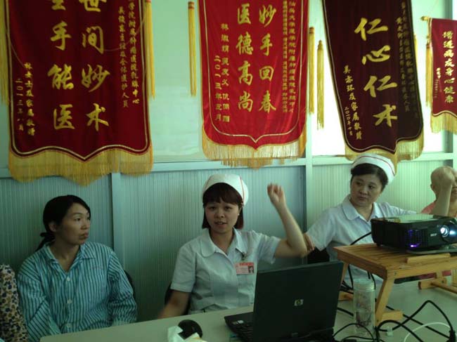 会上,陈护士长向大家介绍了乳腺中心“伊康会”的基本情况,与大家分享了每一届活动温馨的回忆,鼓励病友们保持乐观精神,树立战胜疾病的信心,欢迎病友们加入到“伊康会”这个大家庭中来。病友们畅所欲言,对我院医生的医术及护士的护理均表示肯定及深深的感谢,并积极报名加入“伊康会”。 李丹丹护理师结合幻灯片播放和现场动作示范,向病友们讲解如何做好乳腺癌术后的功能锻炼。大家受益匪浅,表示以后锻炼就不限于爬楼梯与散步了。 病友们根据自己平时的功能锻炼情况以及术后饮食护理方面常见问题提问,陈护士长一一作出回答。会议在激烈的讨论交流中圆满结束。 (通讯员:贺丽芳)