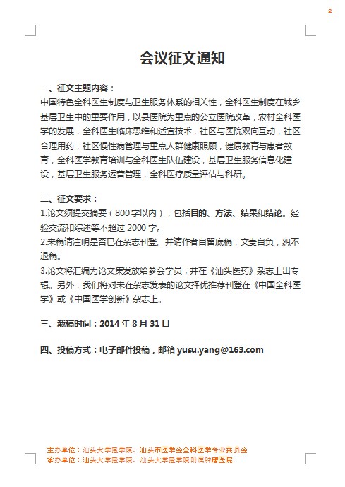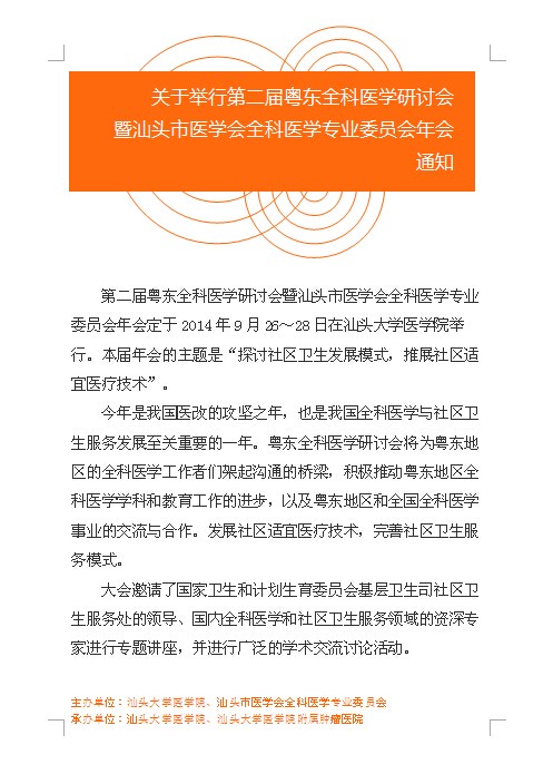 关于举行第二届粤东全科医学研讨会 暨汕头市医学会全科医学专业委员会年会通知