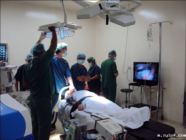2010年7月5、6日,我院头颈科彭汉伟、郭海鹏大夫赴印尼万隆市最大的私人医院Immanuel Hospital(综合医院,550张病床)做手术演示,为一例下颌骨骨化性纤维瘤行下颌骨阶段性切除+髂骨瓣修复手术,并演示了面神经解剖下腮腺浅叶切除术。他们精湛的手术解剖和默契的手术配合得到该院外科医师的高度评价。来自万隆和雅加达的数名口腔颌面外科医师在手术室观摩了手术。由于是第一次邀请国外医师进行手术,该院领导非常重视,院长和数名副院长亲自接待了彭、郭大夫并通过无影灯摄像系统在示教室观摩了手术全过程。院长Ruly Sjambali希望以此为起点继续深入和我院的交流;通过彭大夫的讲述了解我院情况后,他表示愿意在合适的时机邀请我院其它学科专家进行临床技术交流。