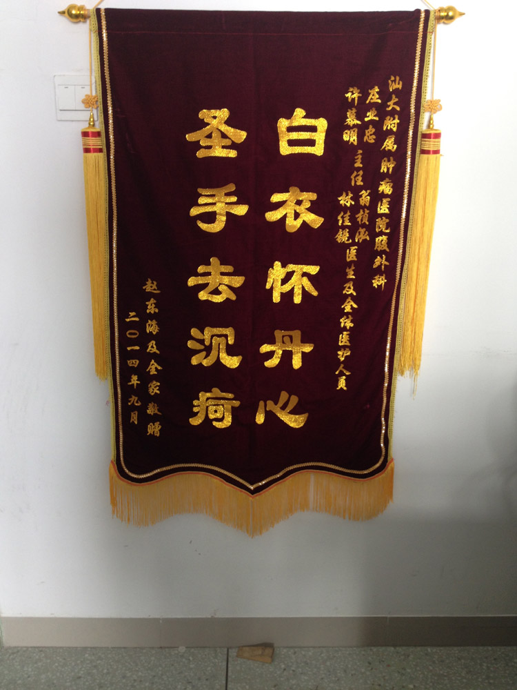医生倾情服务,病人感激赠送锦旗(乳腺肿瘤内科锦旗2014-10-22纪检收到)