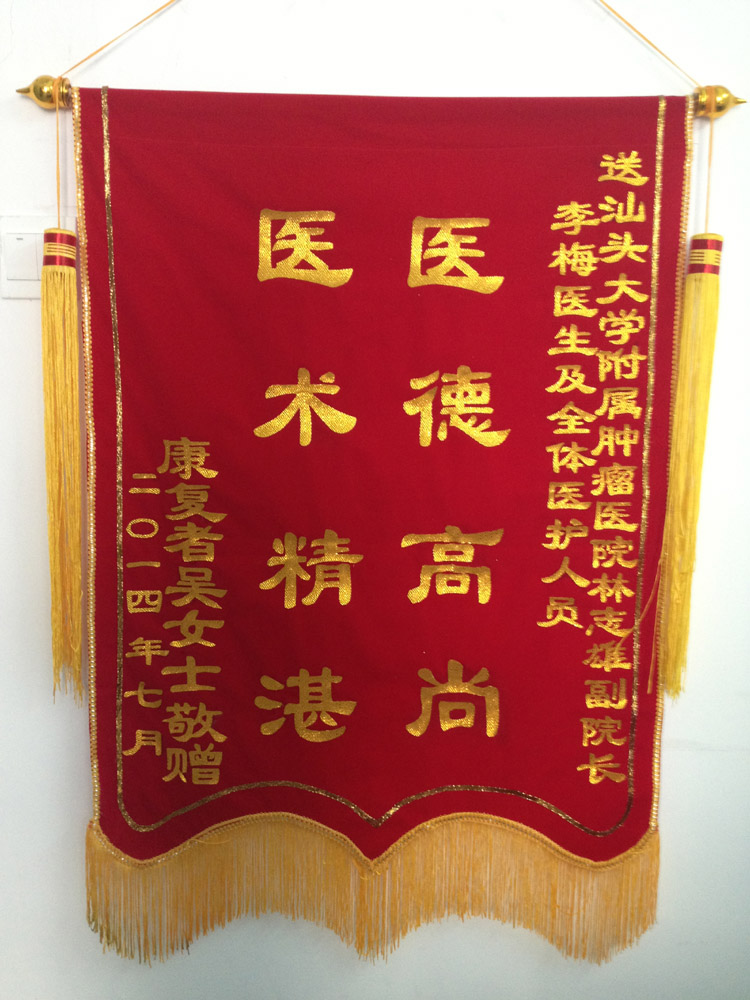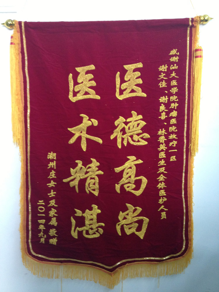 医生倾情服务,病人感激赠送锦旗(乳腺肿瘤内科锦旗2014-10-22纪检收到)