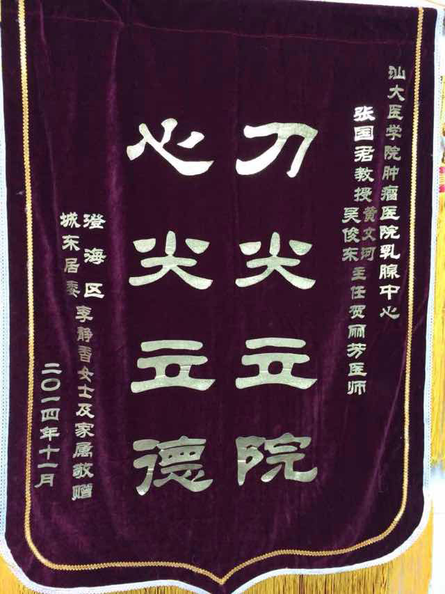 来自乳腺中心的锦旗(2014-11-4纪检收到)