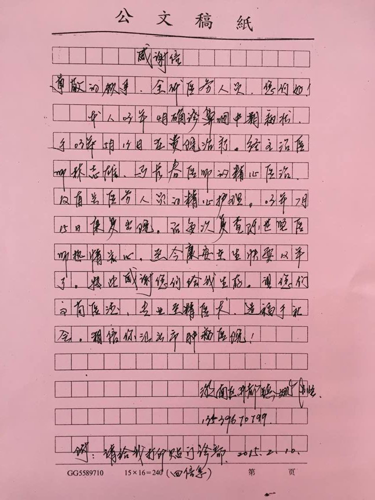 外二头颈科的感谢信(2015-3-2纪检收到)