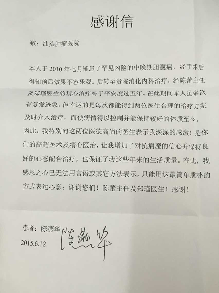 来自放疗一科的感谢信(2015-5-22纪检收到)