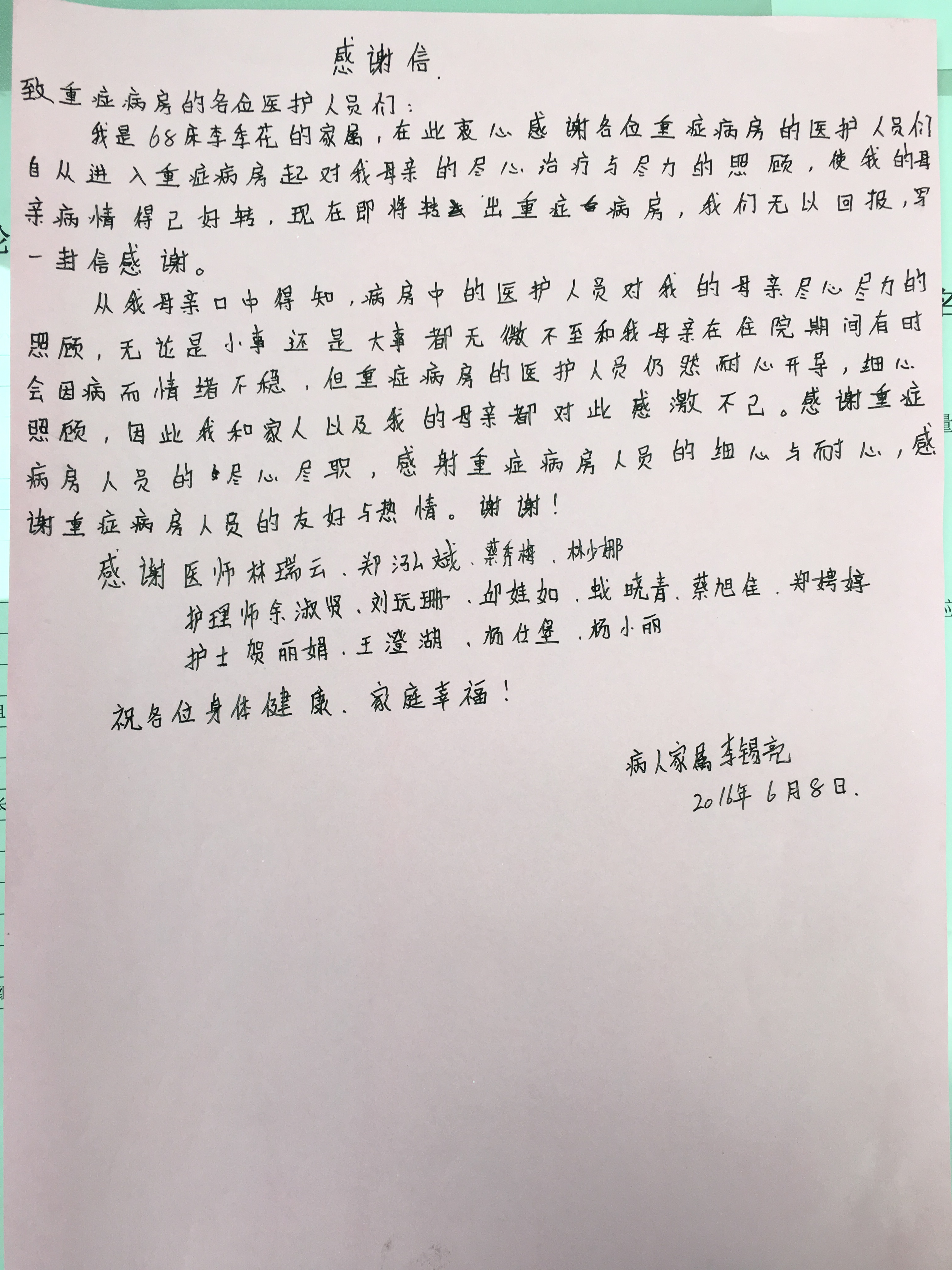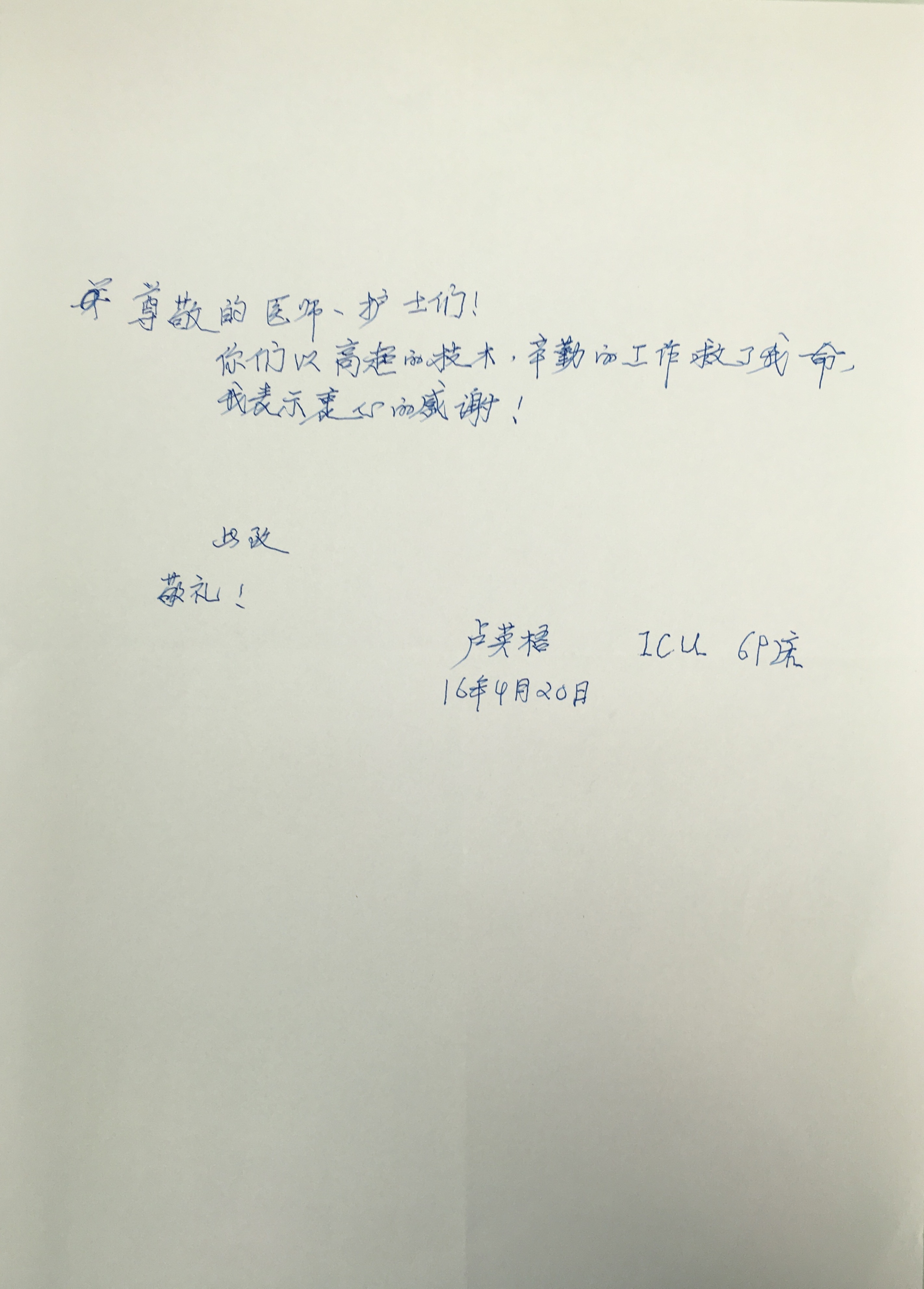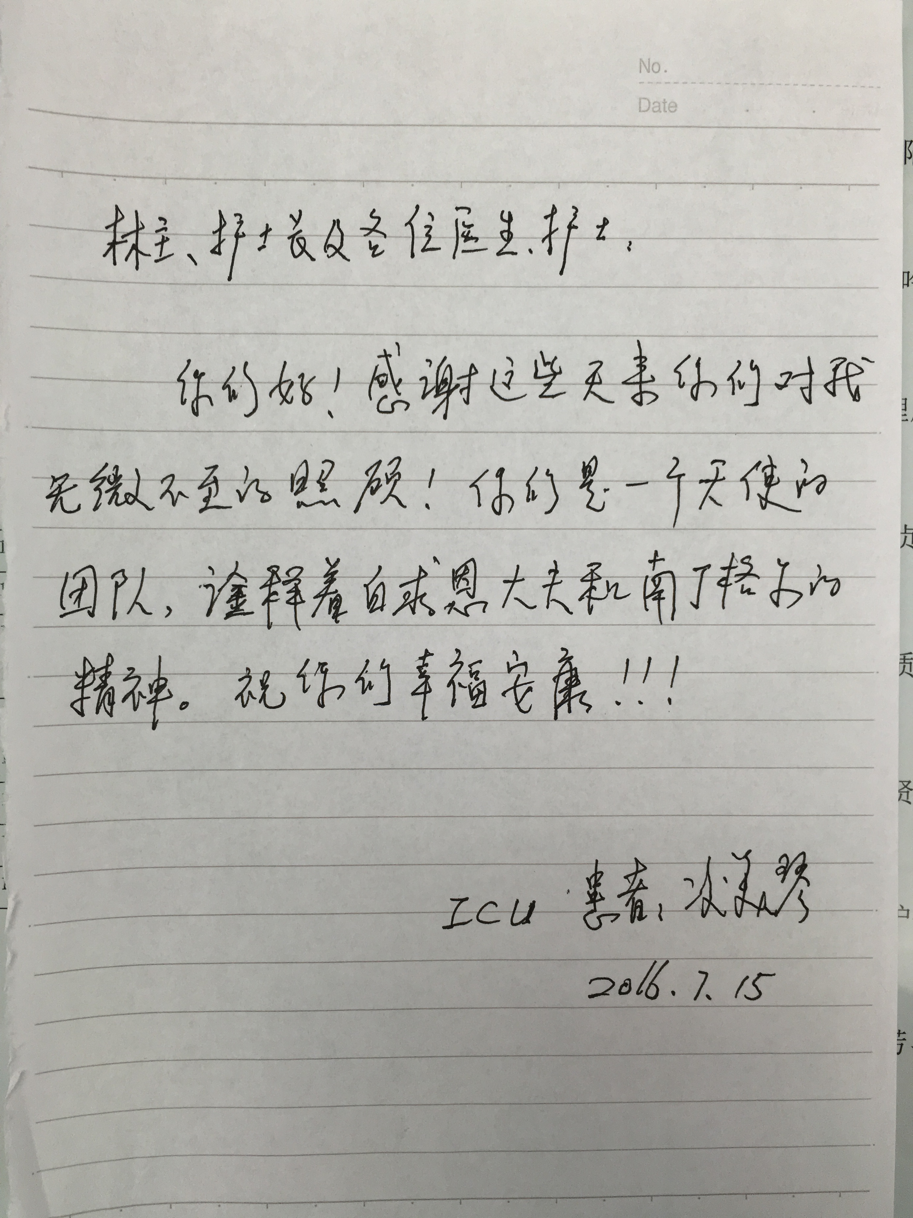 来自ICU三封感谢信