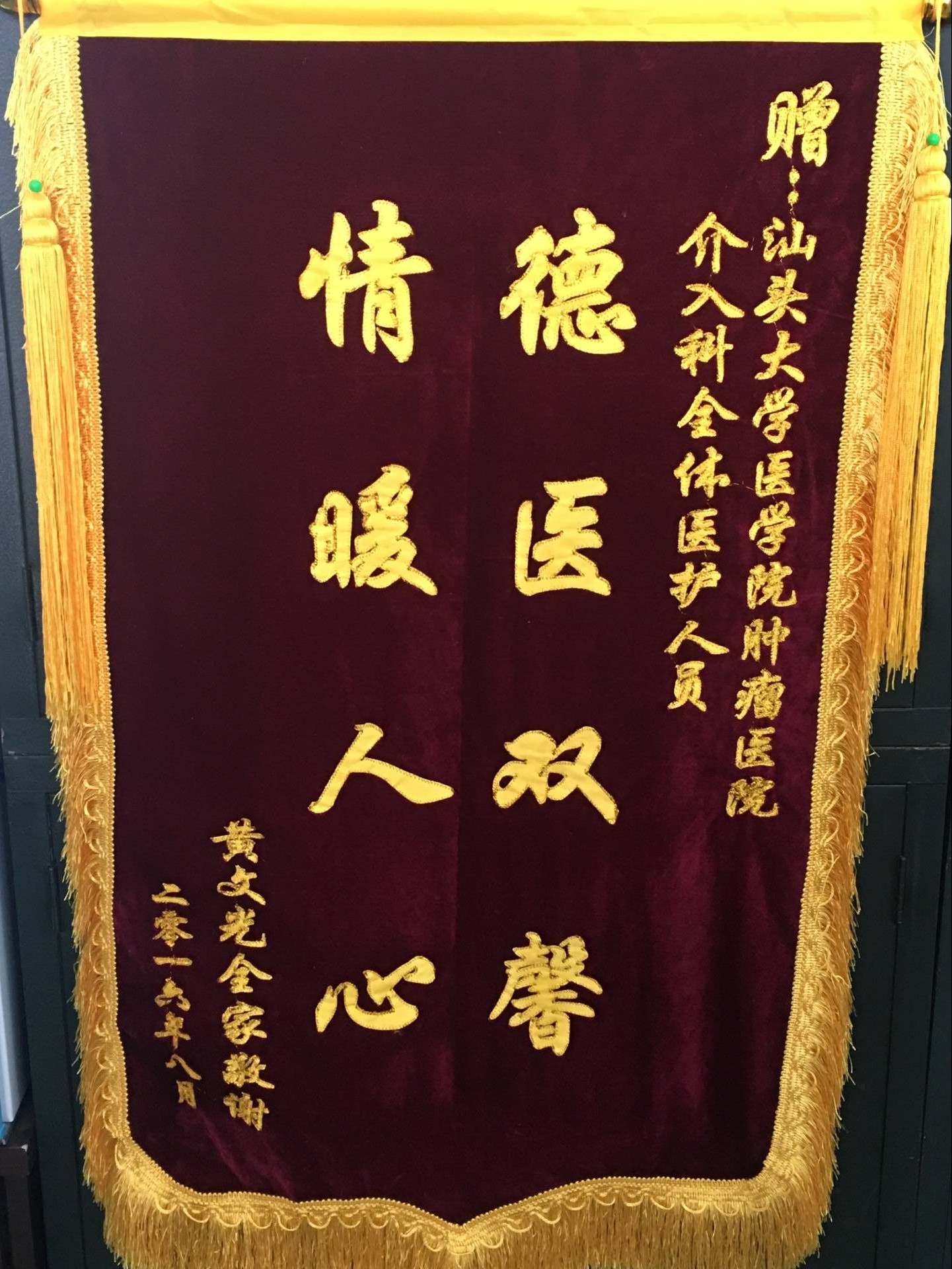 来自介入科的锦旗(2016-8-11纪检收到)