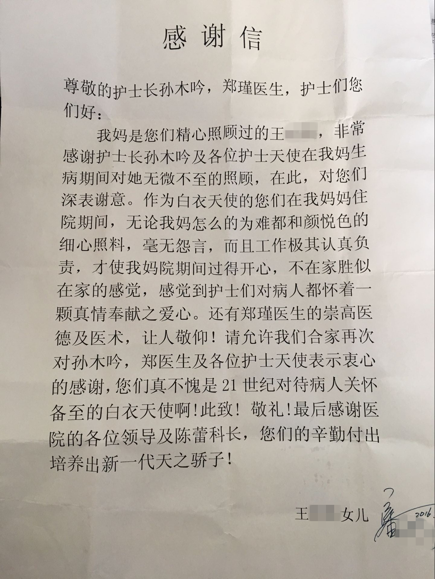 来自消化内科的表扬信(2016-12-26纪检收到)