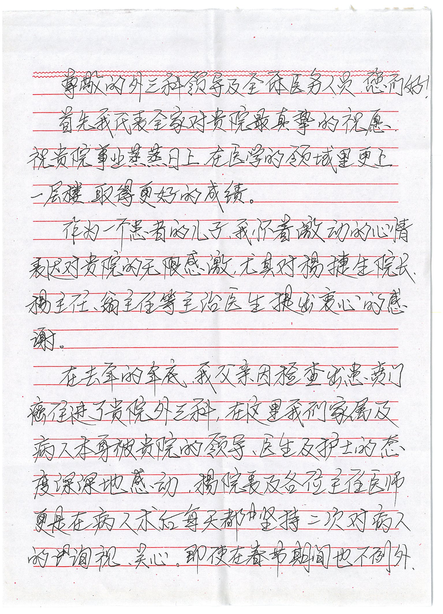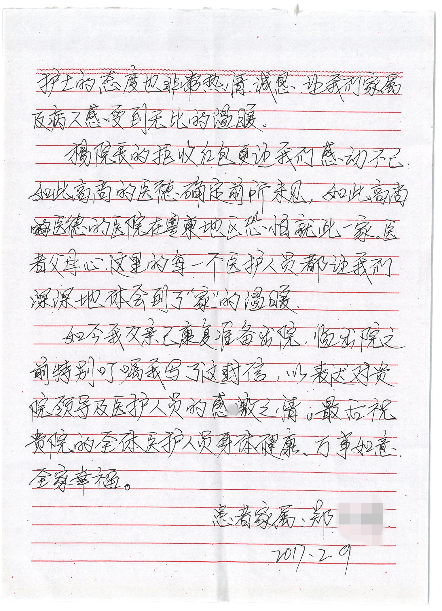 来自外三科患者家属的一封感谢信